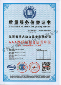 • 質量服務信譽證書